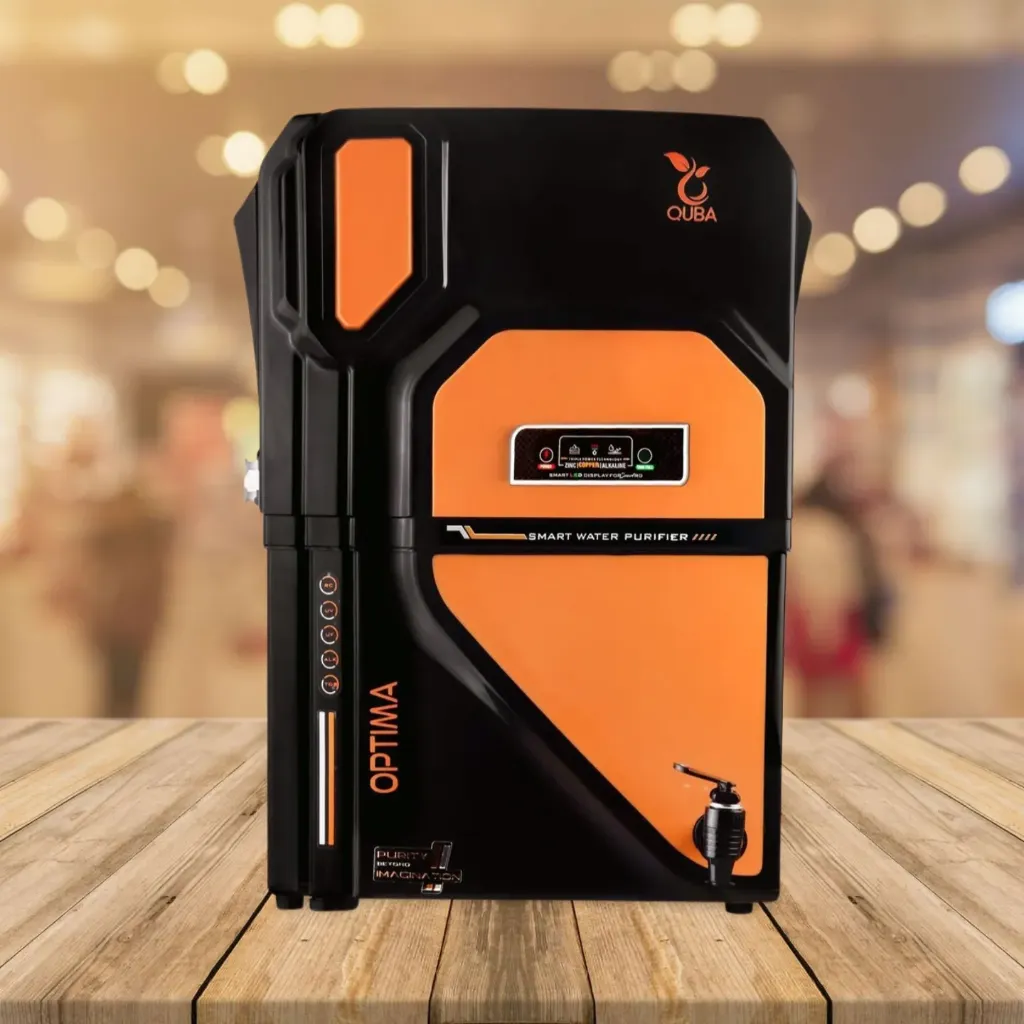 The QUBA OPTIMA BLACK RO Machine boasts a modern and compact black finish, adding elegance to your kitchen. It combines multiple purification stages to eliminate impurities, heavy metals, and harmful bacteria, delivering clean water that tastes fresh and pure.